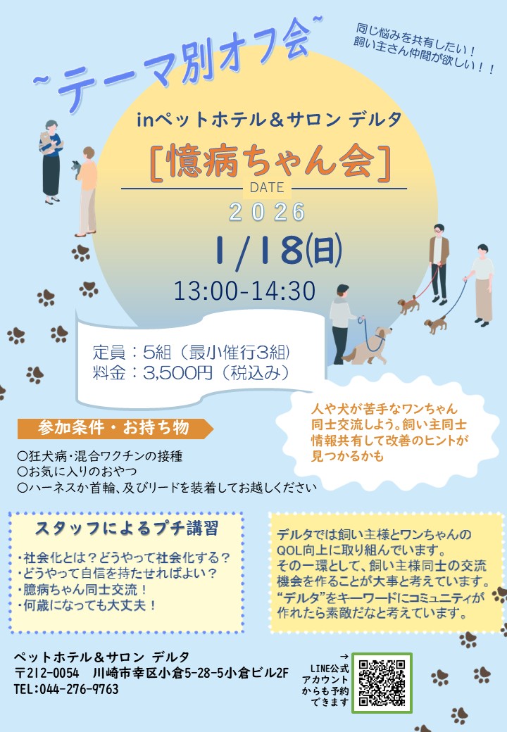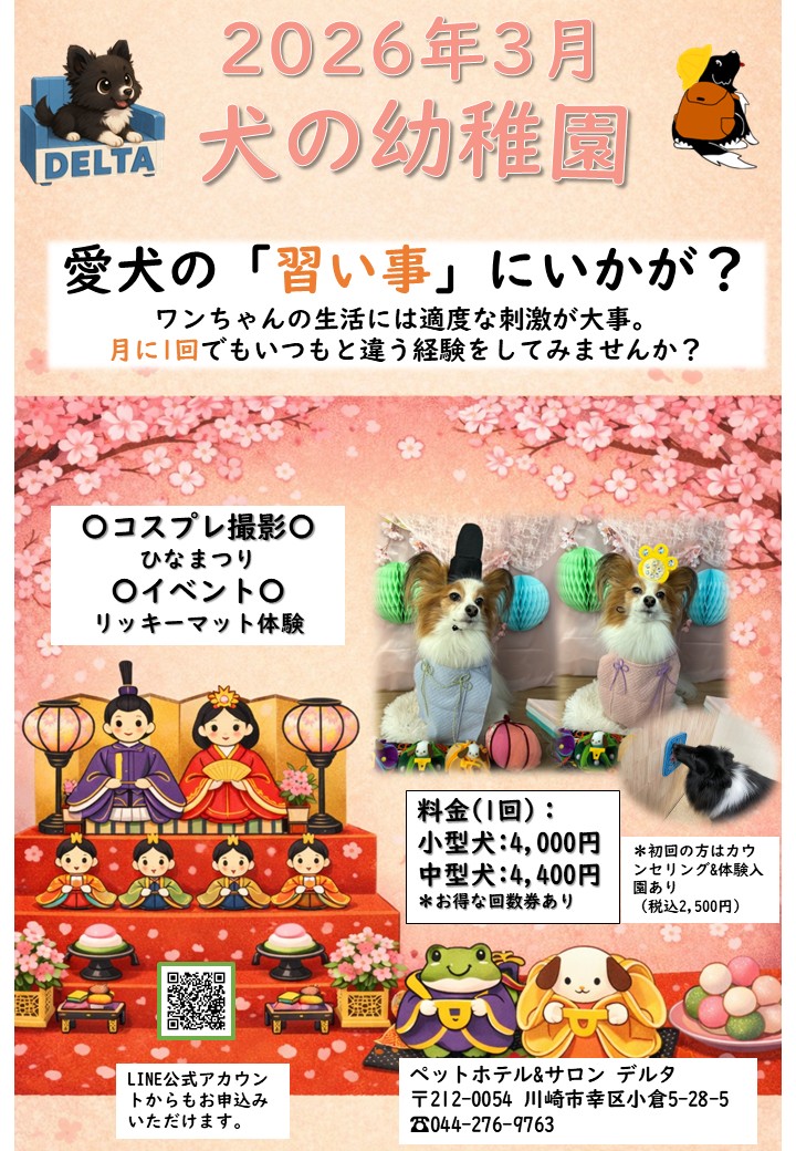 お電話でのお申し込みはこちら(044-276-9763)*ペットホテル&サロン デルタで受付行っております