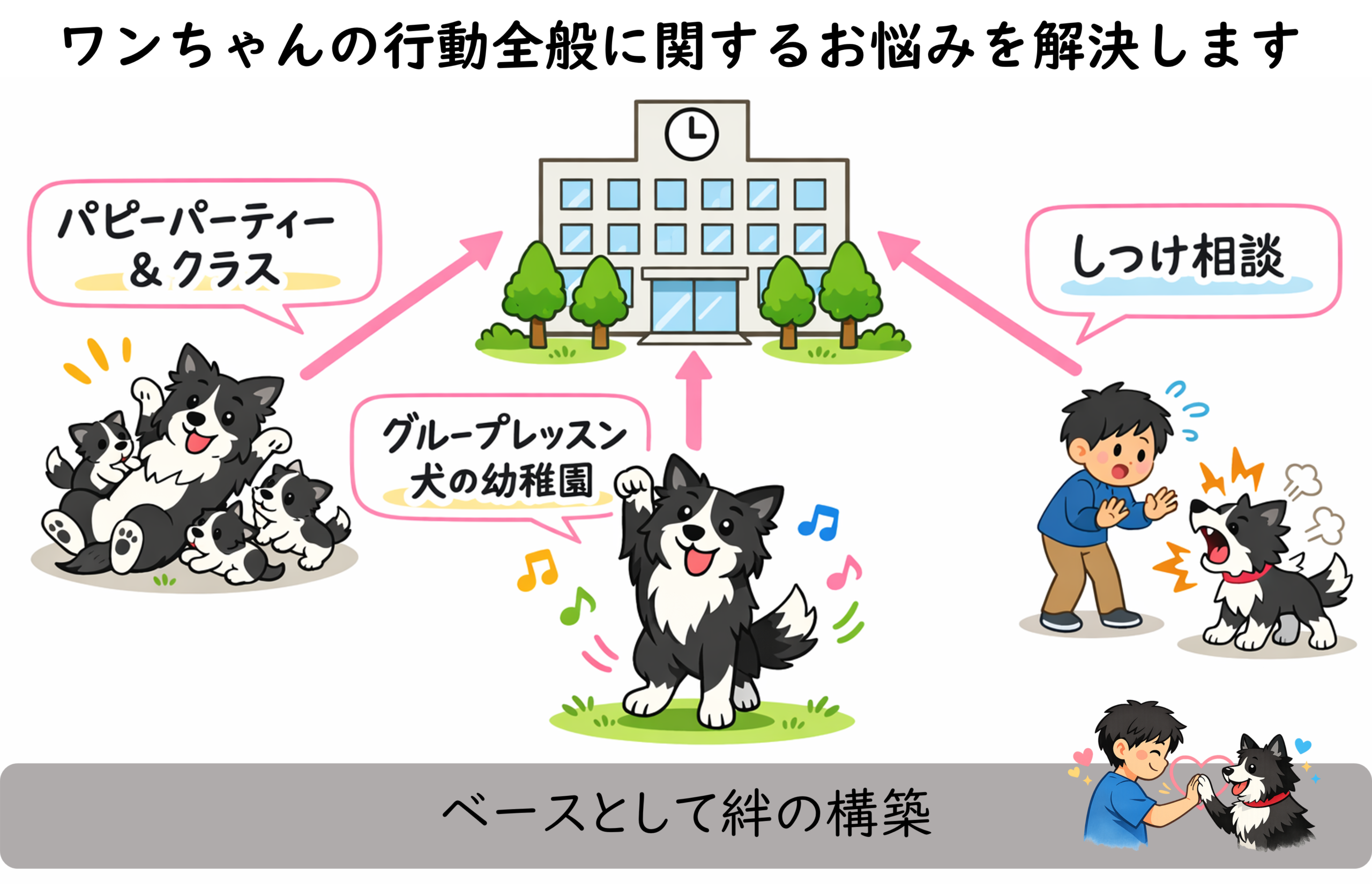 犬の幼稚園・幼稚園+は下記をご参照ください