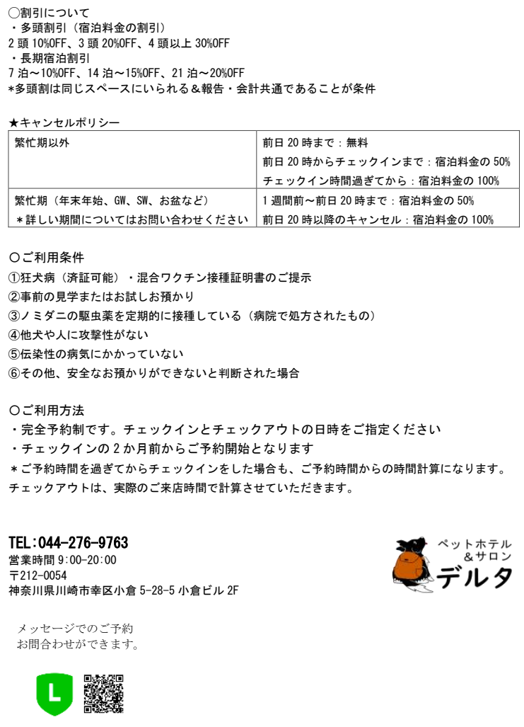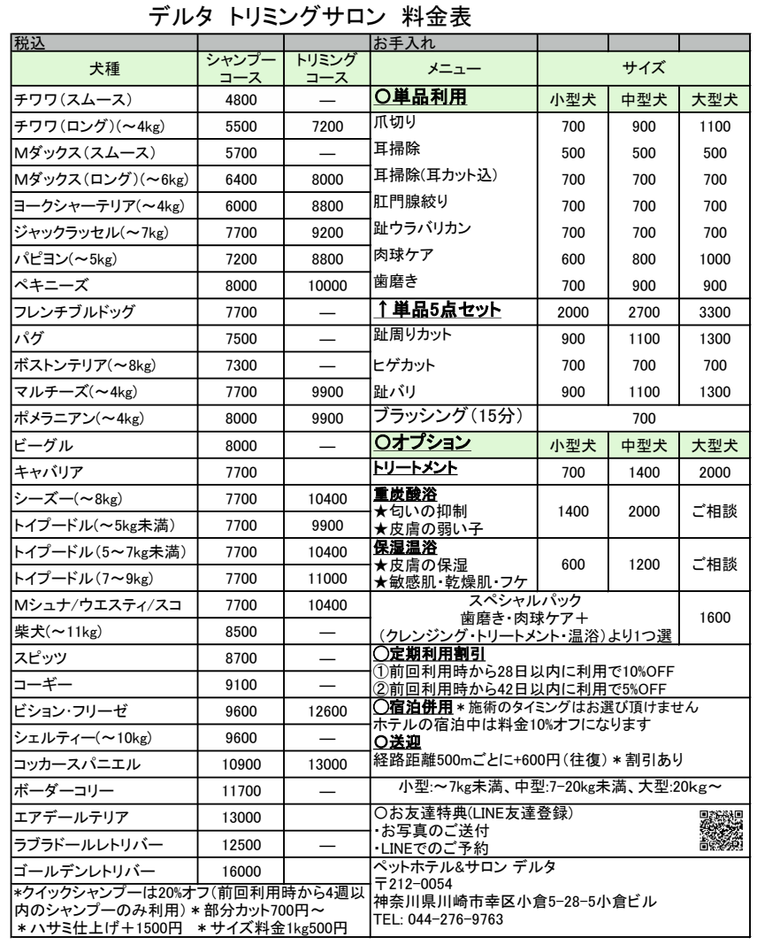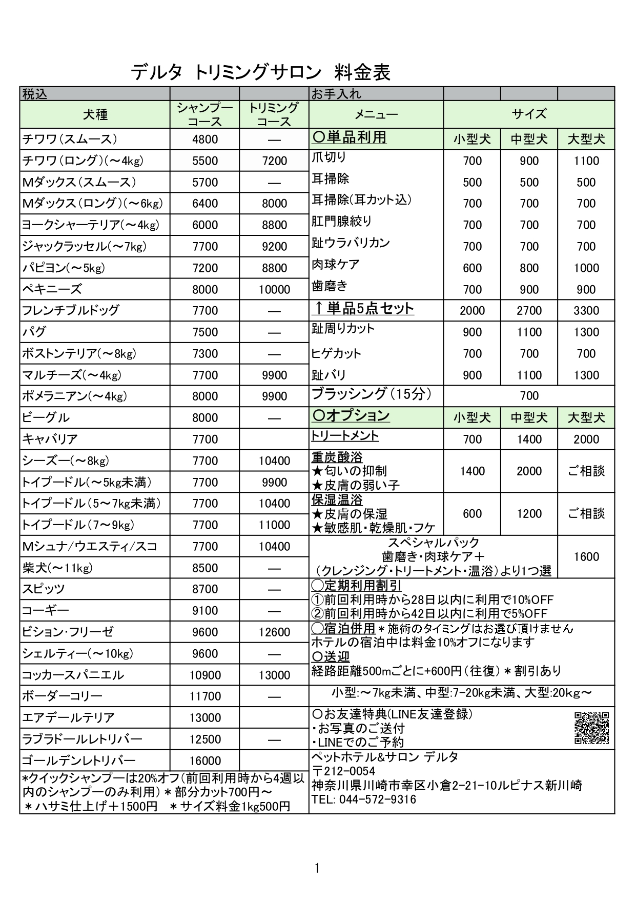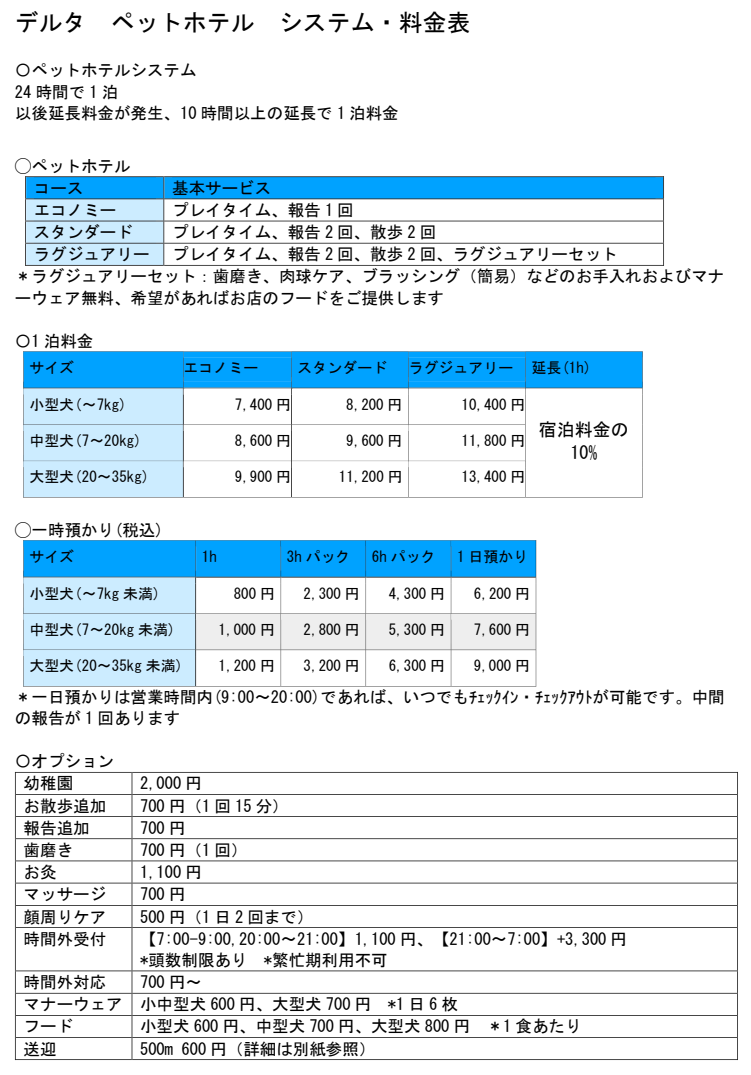 *犬の学校の料金についても改定予定です。少々お待ちください。